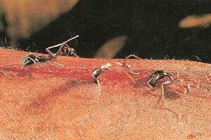 Some cultures positioned ants across wounds, induced them to bite, then twisted the heads off to form sutures to keep cuts closed. |