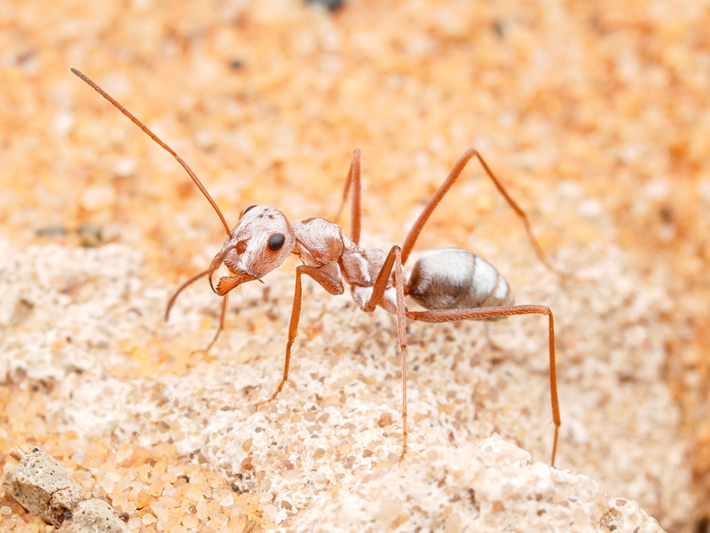 Cataglyphis bombycina has evolved silvery hairs that reflect sunlight, preventing overheating in its Saharan Desert homelands. |