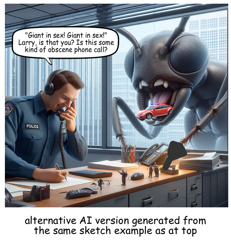 It has been proposed (and refuted) that the oxygen content of the atmosphere has decreased since the ancient past-- prohibiting the monstrous sizes once attained by creatures at least superficially similar to those alive today. Ancient insects could, perhaps, get away with being bigger because the alleged higher vapor pressure of oxygen, way back when, permitted the gas to more easily diffuse into the insects tissue. Alternatively, the reason there are no extant insects as large as Meganeura may be that, as they basked in the sun each morning waiting for their flight muscles to reach temperatures permitting flight to commence, they would make easy prey for warm blooded predators such as birds and mammals. Of course, all these physical and chemical properties are limitations of normal chitin-- no one has ever gotten close enough, long enough to "Them" to see what's different about that giant, mutant radioactive chitin... |