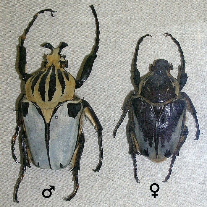 | The most massive living insect is the Goliath beetle of Africa (Goliathus cacius) measuring up to six inches long and weighing in at a whopping 3.4 oz. or only about half the mass of a cup of water. |