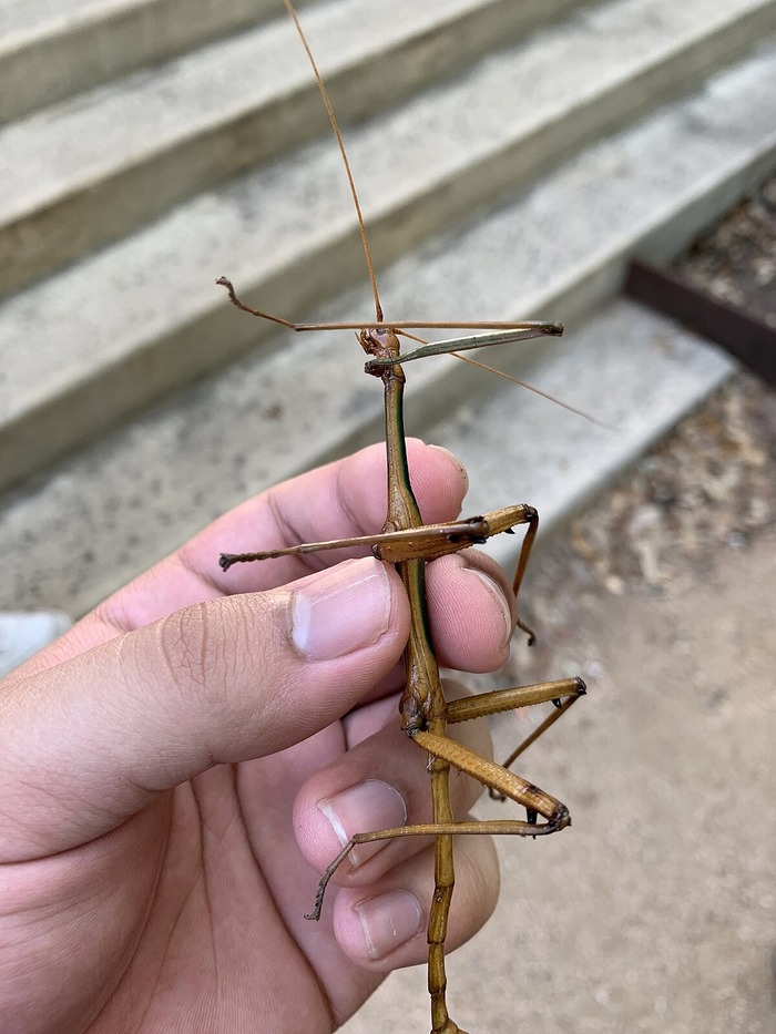 Megaphasma dentricus, a walking stick which reaches a length of seven inches (making it the longest insect in the United States) is dwarfed by its tropical relatives nearly twice as long. |