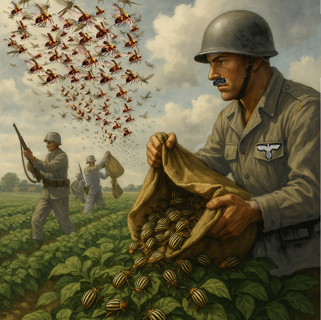 - Nazi Germany reportedly released Colorado potato beetles on England, particularly near Chale on the Isle of Wight, in an attempt to damage British agriculture.The British response involved teams of children, sworn to secrecy, who were dispatched to collect the beetles. Rather than repurposing them for counterattacks, the beetles were dropped into boiling water to prevent further infestation. The secrecy surrounding these operations was likely intended to prevent public panic.