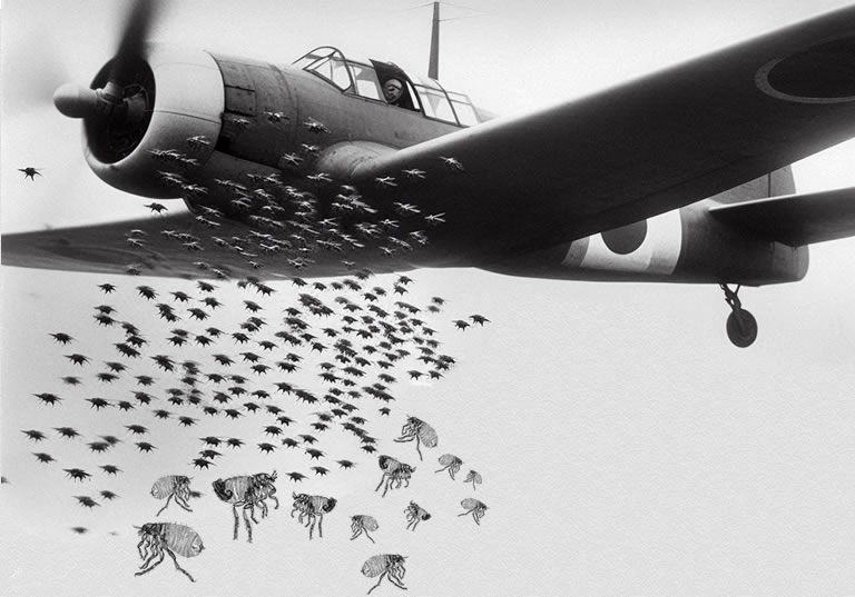- During WWII, the Japanese army air-dropped plague-infested fleas over China to spread plague. Bred in massive quantities and released into Chinese cities and towns not occupied by Japanese forces the fleas caused devastating outbreaks of bubonic plague and other diseases. The unit also experimented with cholera, anthrax, typhoid, and tuberculosis, using prisoners as test subjects.