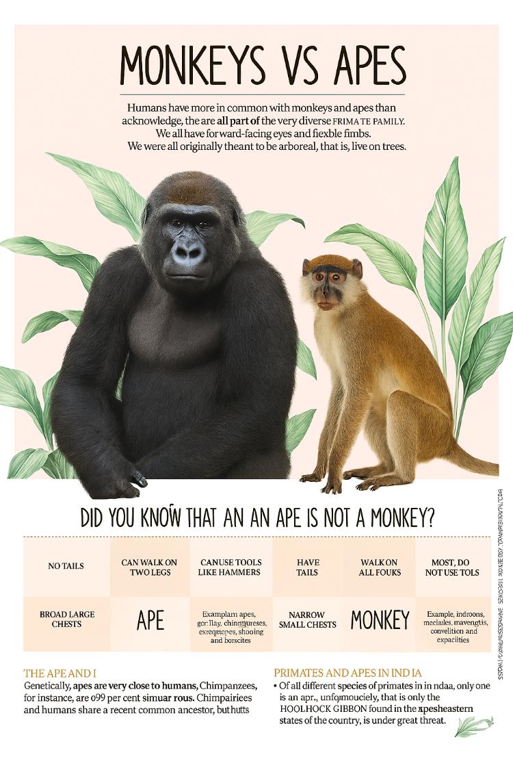 - The fundamental distinction is that apes (including humans, chimpanzees, gorillas, orangutans, and gibbons) have no tails and possess larger brains relative to body size, while monkeys have tails and generally smaller brain-to-body ratios, though this simple rule breaks down with a few exceptions like the Barbary macaque, which is technically a monkey but has no visible tail.