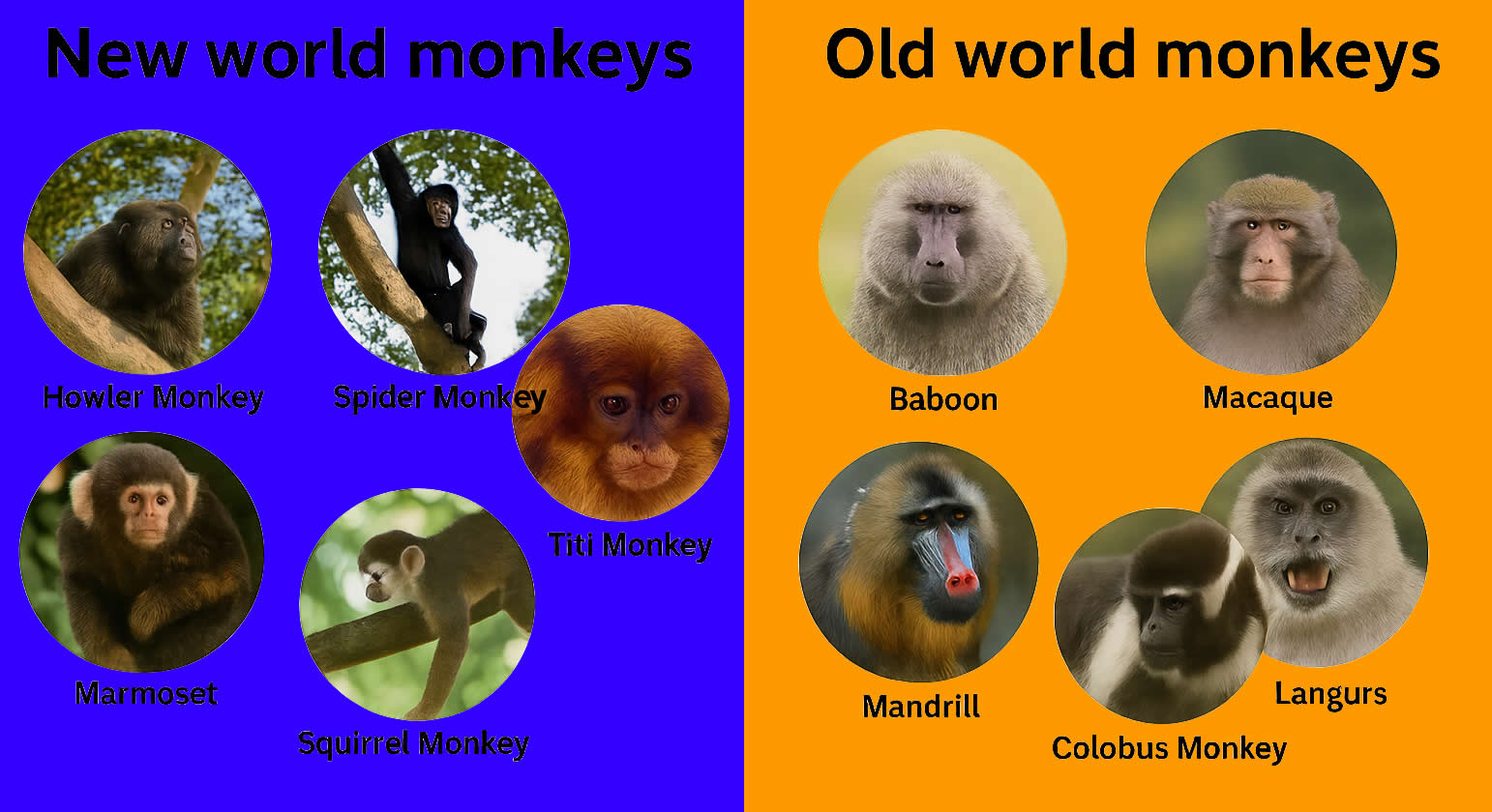OLD WORLD MONKEYS AND NEW WORLD MONKEYS