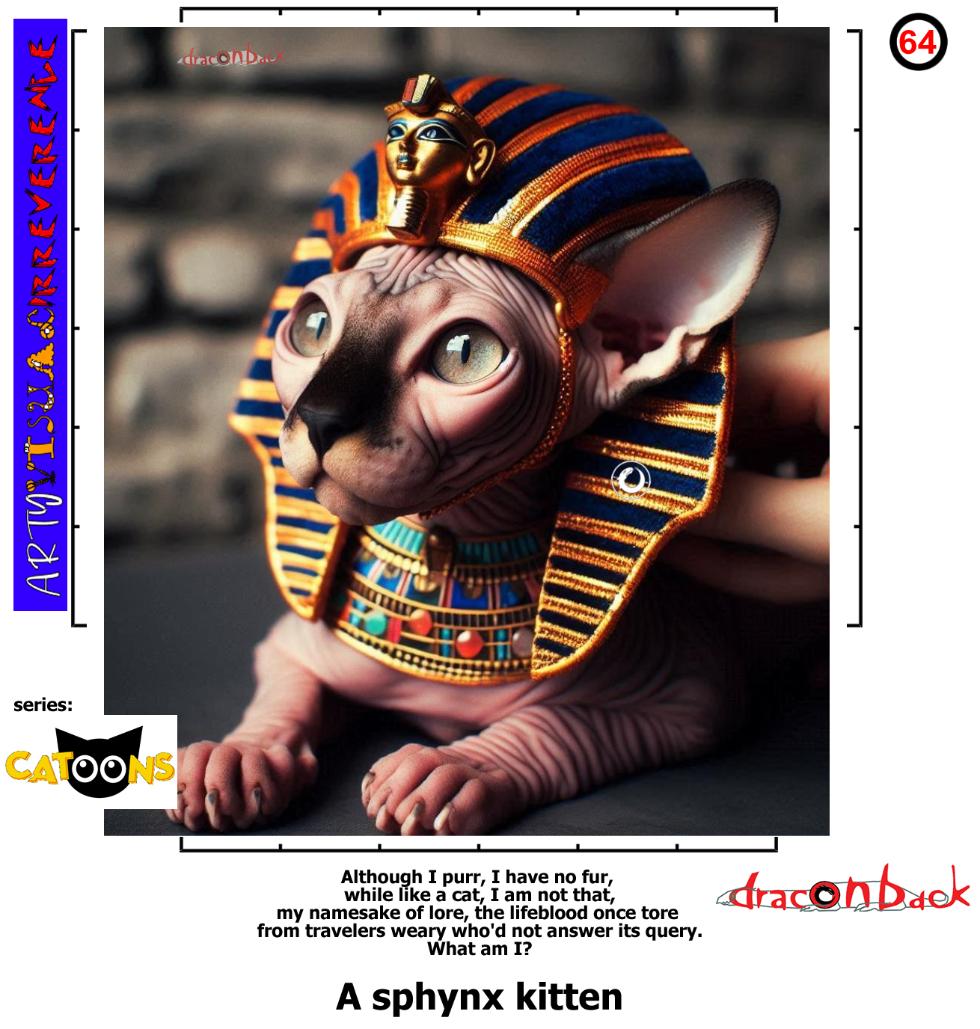 - The Riddle of the Sphinx is from Greek mythology, specifically the story of Oedipus. The Sphinx, a creature with a woman's head and a lion's body, terrorized the city of Thebes by asking travelers a riddle and devouring those who answered incorrectly. The riddle was: "What walks on four legs in the morning, two legs at noon, and three legs in the evening?" Oedipus correctly answered "Man" (who crawls as a baby, walks upright as an adult, and uses a cane in old age), causing the Sphinx to destroy herself and freeing Thebes from her curse.